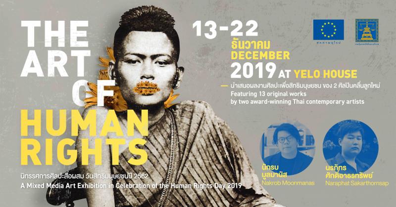 นิทรรศการที่จะพาเราไปเรียนรู้เกี่ยวกับสิทธิมนุษยชนและสิทธิขั้นพื้นฐานของสหภาพยุโรป โดยสะท้อนผ่านผลงานของศิลปินทั้ง 2 คือ คุณนักรบ มูลมานัส ศิลปินผู้ชอบจับภาพโบราณมาผสมกับไลฟ์สไตล์สมัยใหม่ ออกมาเป็นคอลลาจสไตล์ Contemporary และ คุณนรภัทร ศักดิ์อาธรทรัพย์ ศิลปินสาย Installation ที่มักจะนำดอกไม้มาเป็นปัจจัยในการบอกเล่าเรื่องราว ซึ่งสิทธิที่ถูกหยิบมาพูดในงานก็จะมีตั้งแต่ เสรีภาพในการแสดงออก อิสรภาพจากการเป็นทาสและการถูกบังคับใช้แรงงาน ความเสมอภาคระหว่างหญิง-ชาย สิทธิเด็ก เสรีภาพในการนับถือศาสนา และสิทธิที่จะไม่ถูกเลือกปฏิบัติ