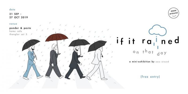 แบรนด์ร้านของจุ๊กจิ๊กสุดน่ารักในโลกออนไลน์อย่าง Ease Around เขากำลังจะมีนิทรรศการเดี่ยวเป็นของตัวเองแล้วนะ เพราะแบรนด์นี้เขาโดดเด่นด้วยลายเส้นอันแสนเรียบง่ายและน่ารักจนทำให้โปรดักส์ขายดีเป็นเทน้ำเทท่า พวกเขาก็เลยจับลายเส้นเหล่านี้มาจัดเป็น Mini-Exhibition ซะเลย โดยเริ่มมาจากคำถามสนุก ๆ ที่เกิดขึ้นในวันฝนพรำอันแสนจะขี้เกียจ นำไอเดียที่ลอยละล่องเหมือนก้อนเมฆวันฟ้าครึ้มมากลั่นเป็นชุดภาพวาด if it rained on that day เพื่อนำมาแขวนและจัดแสดงที่ Ponder & Paste โฮมคาเฟ่แสนอบอุ่นในย่านทองหล่อ