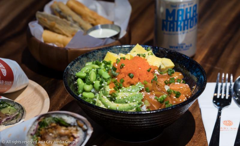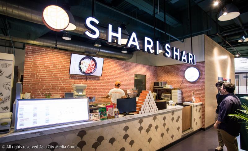 Shari Shari เป็นร้านอาหารกินง่ายที่เพิ่งย้ายจากสีลมคอมเพล็กซ์มาหมาด ๆ ชื่อร้านเป็นคำในภาษาญี่ปุ่นที่มีความหมายถึงข้าวที่ผสมกับน้ำส้มสายชูจนกลายเป็นข้าวแบบซูชิของญี่ปุ่น มีลักลักษณะคล้ายเกล็ดหิมะปุยสีขาว ๆ ที่ตั้งชื่อเช่นนี้ก็เพราะมองว่า ซูชินั้นมีข้าวเป็นส่วนประกอบหลักสำคัญ ทำให้มองเห็นว่าร้านอาหารแบรนด์นี้มีความใส่ใจในรายละเอียดและวัตถุดิบเล็ก ๆ น้อย ๆ เป็นอย่างมาก แบรนด์นี้ได้แรงบันดาลใจจากการเดินทางไปเจอ ซูชิเบอร์ริโต้ซึ่งอยู่ที่ฝั่งอเมริกา เมื่อแรกเห็นจึงรู้สึกประทับใจกับคอนเซปต์ของอาหารชนิดนี้มาก ๆ หลังกลับมาไทยทุกคนที่มีส่วนเกี่ยวข้องในร้านจึงแลกเปลี่ยนไอเดีย ความคิดเห็นกันถึงการพัฒนาอาหารและรสชาติในแบบฉบับของพวกเขา