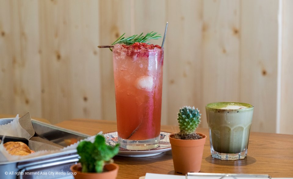 กาแฟทั้งร้อนและเย็น (50-85 บาท) ใช้เมล็ดกาแฟดอยช้างเพื่อสื่อถึงความเป็นไทยให้แขกฝรั่งได้ลองชิมกัน อยากสดชื่นหน่อยก็ลองสั่ง Mars Territory (95 บาท) โซดาผลไม้จากลิ้นจี่ แตงโมและทับทิม มีเมล็ดทับทิมให้เคี้ยวเล่นกันด้วยนะ