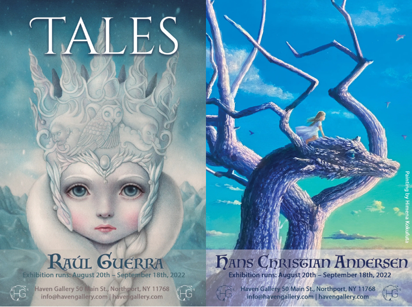 เริ่มต้นกันที่นิทรรศการของศิลปินจากสเปน Raul Guerra ที่ชื่อว่า Tales ซึ่งเขาคนนี้มีโชว์เคสเดี่ยวกับทางแกลเลอรีมาแล้วถึง 3 ครั้ง โดยคราวนี้เขานำเสนอผลงานการวาดคาแรกเตอร์จากเรื่องเล่า นิทาน และนิยายปรัมปราทั้งหลายที่ทุกคนคุ้นเคย เช่น ก็อบลิน นางเงือก เมดูซา ราชินีโพแดง หรือ Queen of Hearts รวมถึงตัวละครจากโลกตะวันออกอย่าง เจ้าหญิงคางุยะ ด้วย