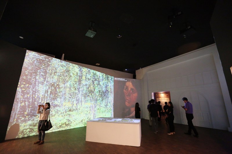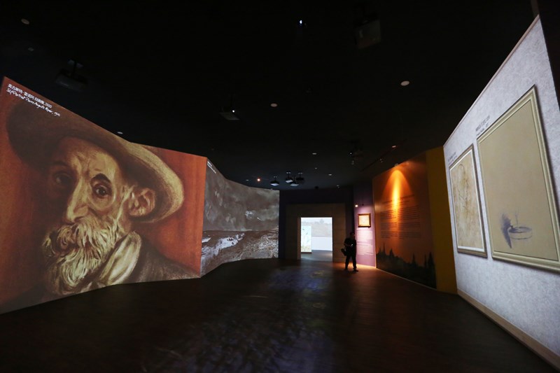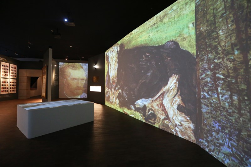 ความตระการตาของที่นี่คือจะใช้เทคนิคการนำเสนอภาพเคลื่อนไหวที่ต้องใช้โปรเจคเตอร์มากถึง 40 ตัวเพื่อทำให้ภาพสมจริงที่สุด โดยภายในจะแบ่งออกเป็น 8 โซนที่ไล่เรียงตั้งแต่แนะนำให้รู้จักผลงานของแวนโกะห์ ซึ่งล้วนแต่เป็นภาพเขียนขึ้นหิ้งของพิพิธภัณฑ์ชั้นนำทั่วโลก โดยจะเป็นการขยายภาพแบบโคลสอัพให้เห็นถึงรายละเอียดฝีแปรงของศิลปิน