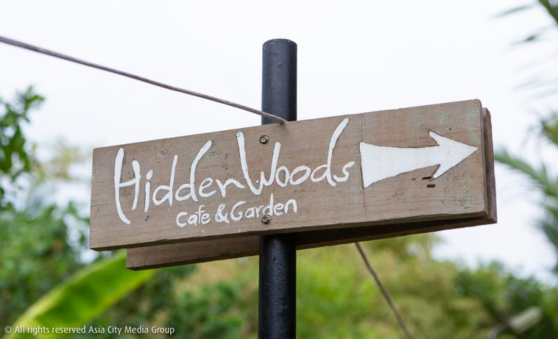 เจ้าของร้านนั้นเนรมิตให้ Hiddenwoods เป็นพื้นที่ลับสมชื่อ ออกแบบให้ทางเดินเข้าร้านนั้นต้องอ้อมไปอ้อมมาและอาจต้องก้มหลบลอดใต้กิ่งไม้ ก็ด้วยความตั้งใจนำเสนอให้นักท่องเที่ยวนั้นได้ซึมซับบรรยากาศแบบธรรมชาตินั่นเอง สังเกตที่โลโก้ของร้านจะเป็นรูปนกชนิดหนึ่งสัญชาติออสเตรเลียนั่นคือ นกคอกคาทู หรือที่คนไทยจะเรียกว่า นกกระตั้ว ซึ่งการหยิบสัญลักษณ์นกชนิดนี้มาใช้เพราะว่า สัตว์ปีกสายพันธ์ุนี้เดิมทีอยู่กันเป็นครอบครัวบนเกาะบางกะเจ้าถึง 4 ตัว ช่วงเปิดร้านแรก ๆ เจ้านกพวกนี้ยังเป็นของกำนัลให้ผู้มาเยือนได้ยลโฉมด้วย ณ ตอนนี้ก็ต้องลุ้นกันว่าจะมีโอกาสได้เจอพวกมันอีกหรือไม่