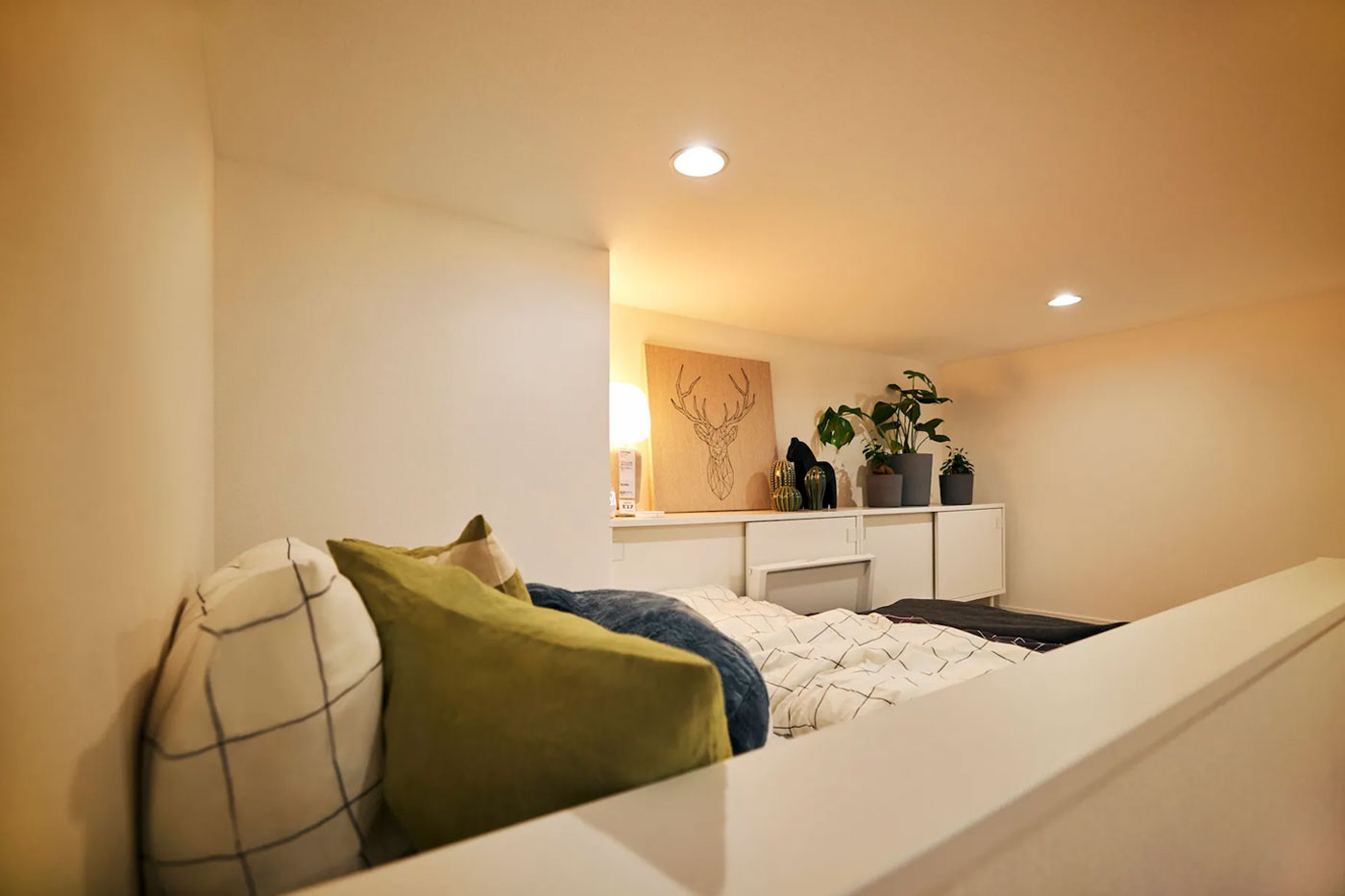 Tiny Homes ของ IKEA Japan เป็นห้องขนาดเล็กที่ใช้ประโยชน์จากเพดานสูง แยกพื้นที่ใช้สอยเป็นชั้นลอยสำหรับนอน และชั้นล่างสำหรับเป็นมุมนั่งเล่นและครัวไซซ์กะทัดรัด ขณะเดียวกัน สเปซสำหรับจัดวางของก็มีมาให้ไม่น้อยเลยล่ะ โดยราวแขวนเสื้อผ้ากับชั้นวางของถูกจัดไว้ด้วยกันอย่างเป็นสัดส่วน
