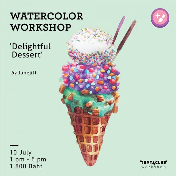 คอร์สเวิร์คช็อปสำหรับคนรักขนมหวานและการวาดสีน้ำ สอนโดย JaneJitt ศิลปินสาวจากรั้วศิลปากร ที่โดดเด่นในการเลือกใช้สีคัลเลอร์ฟูลแบบป๊อบๆ ไม่หวานเลี่ยนฟุ้งฝันเกินไป ผู้ชายแมนๆ มาเวิร์คช็อปคอร์สนี้ด้วยกันกับเพื่อนสาวก็ยังได้