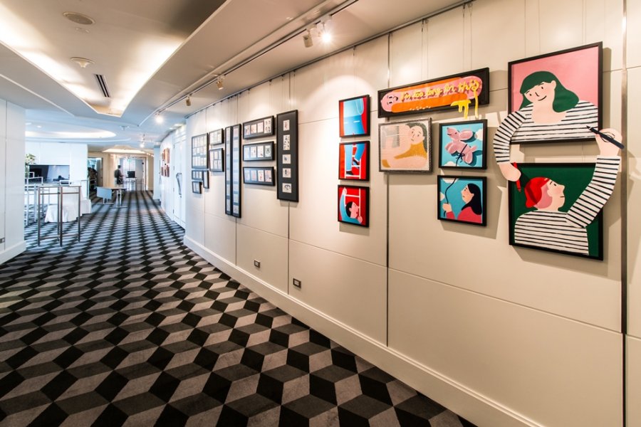 โซนผนังด้านนี้โป๊ยเซียนตั้งชื่อว่า Paper Town ซึ่งจะแขวนผลงานที่นำเสนอเกี่ยวกับการมองเรื่องราวต่างๆ ในชีวิต เลยมีรูปเมืองสีพาสเทลน่ารักๆ เป็นเมืองในความคิดของเด็กๆ ตุ๊กตากระดาษที่มีรูปร่างต่างกันออกไปนั้นแสดงถึงวิธีการจำคนแบบสมัยยังเป็นเด็ก ทั้งเด็กอ้วนมนุษย์ลูกโป่ง มนุษย์หุ่นยนต์ และอื่นๆ ที่ล้วนแสดงเอกลักษณ์ออกมา ขอบอกว่าเป็นผลงานที่ทำขึ้นมาใหม่เกือบทั้งหมดเพื่องานนี้โดยเฉพาะเลยด้วยนะ มีเพียงแค่หนึ่งชิ้นที่เราเคยเห็นกันไปในเพจเท่านั้น!