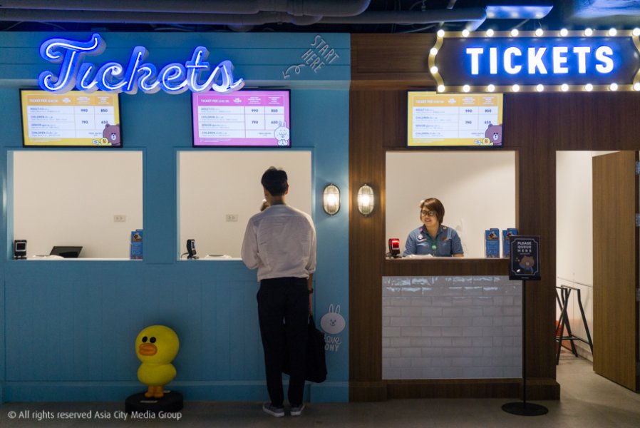 จุดซื้อตั๋วหน้าตาน่ารักตั้งติดอยู่กับ LINE Village Bangkok โดยหันหน้าออกไปทางหน้าศูนย์การค้าเลย ทันทีที่ผ่านจุดซื้อตั๋วเข้าไปก็เป็นเวลาแห่งความสนุกในการตะลุยหมู่บ้านของเหล่าคาแรกเตอร์ที่เราคุ้นเคยทั้ง 24 โซน ถ้าจะให้พูดครบทั้ง 24 โซนบทความนี้น่าจะยาวเป็นเส้นก๋วยเตี๋ยว เราเลยขอยกไฮไลต์เด็ด ๆ ของโซนที่เราปลื้มมาบอกกล่าวก็แล้วกัน