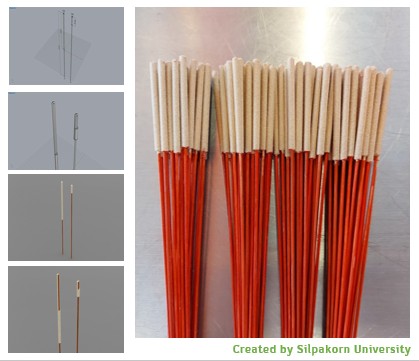 เจ้าธูปศิลปากรรังสรรค์นี้ เป็นผลงานของทีมวิจัย (โดย ผศ.ดร.วีรวัฒน์ สิริเวสมาศ จากคณะมัณฑนศิลป์ มหาวิทยาลัยศิลปากร) ที่มองเห็นจุดบอดของการมูเตลูของคนยุคนี้ที่ต้องใช้ 'ธูป' เป็นเครื่องมือหลักในการสื่อสารกับเทพเจ้าและบรรพบุรุษ ซึ่งเป็นต้นตอทำให้เกิดควันพิษและฝุ่น PM 2.5 เป็นจำนวนมาก ทางทีมวิจัยเลยมีไอเดียการทำธูปยุค 5G ขึ้น ภายใต้โจทย์หลักที่ยังคงความเป็นธูปสตไล์ดั้งเดิม (อากงอาม่าจะได้ไม่คัลเจอร์ช็อกเกินไป) แต่มีความพิเศษตรงตัวธูปที่ถูกออกแบบมาให้มีขนาดสั้นลงเกือบ 3 เท่าตัว ใช้วัสดุในการผลิตน้อยลง และเกิดการเผาไหม้น้อยกว่าธูปแบบปกติ ซึ่งความเจ๋งคือถึงแม้จะจิ๋วแต่ก็แจ๋ว เพราะเจ้าธูปสุดมินิมอลนี้ สามารถจุดได้นานเท่าธูปจริง เหมาะสำหรับชาวมูเตลูทั่วฟ้าเมืองไทยที่ชอบขอพรนาน ๆ