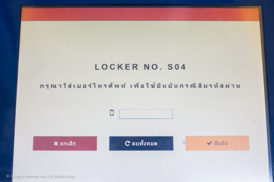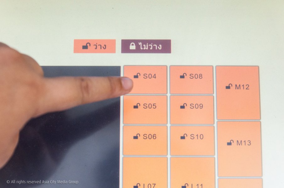 วิธีการใช้ก็ง่าย เพราะมีเมนูทั้งภาษาไทย อังกฤษ จีน และญี่ปุ่น โดยขั้นแรกก็จะให้เราเลือกเช่าว่าจะเช่าตู้ไซส์ไหน พร้อมใส่รหัส และยังให้ใส่ข้อมูลเป็นเบอร์โทรเพื่อป้องกันการลืมรหัสด้วย