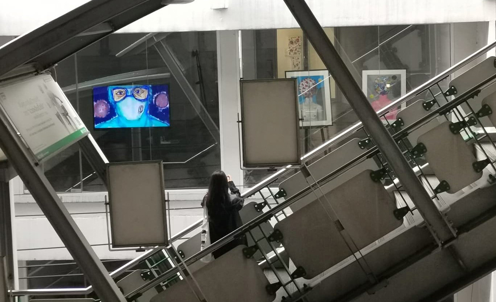 และนอกจากจะจัดแสดงผลงานศิลปะในรูปแบบนิทรรศการออนไลน์แล้ว ด้วยความที่โลเคชัน Palette Artspace ตั้งอยู่ติดกับสถานีรถไฟฟ้า ทางแกลเลอรีจึงได้จัดแสดงผลงานศิลปะหันหน้าออกมาทางด้านนอก เพื่อให้ทุกคนสามารถรับชมงานศิลปะกันได้แบบรักษาระยะห่าง และใคร ๆ ก็สามารถมาเสพศิลปะริมทางกันได้ด้วย!