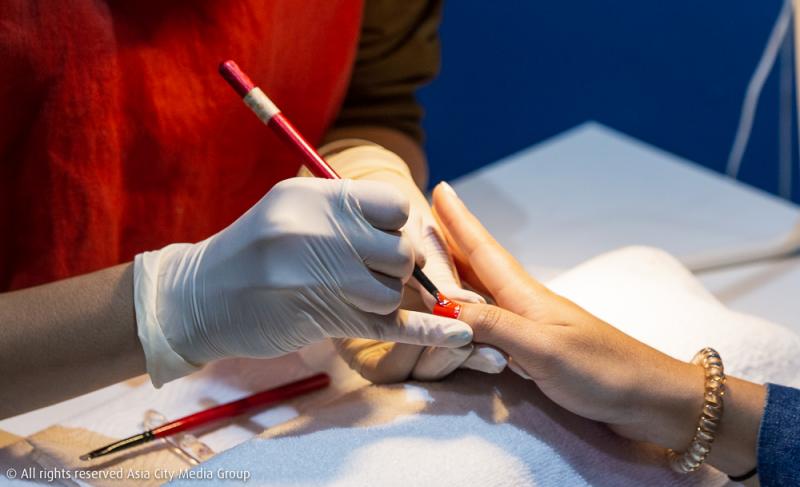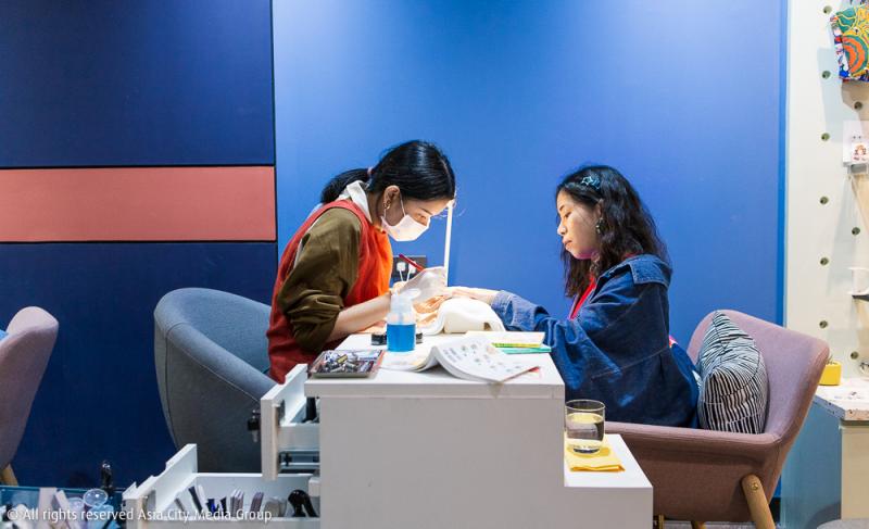 และอย่างที่รู้กันว่าร้าน Mininail คือสตูดิโอทำเล็บที่เปิดมิติใหม่ของวงการทำเล็บในเมืองไทย ด้วยการมีช่างทำเล็บที่เรียกว่า Nail Artists ที่เรียนจบทางด้านศิลปะมาโดยเฉพาะ เพื่อออกแบบลายเล็บของเราให้ยูนีคและเก๋กว่าเพื่อน โดยในวันนี้เราลองเป็นคอร์สทำเล็บแบบ Omagase (1,200-1,800 บาท) ที่เราตื่นเต้นมากเว่อร์ เพราะนี่คือคอร์สที่จะปล่อยให้เนลอาร์ติสจัดการดีไซน์เล็บทั้ง 10 ของเราแบบแรนด้อมสไตล์โอมากาเสะ แค่รีเควสต์ไปว่าอยากได้โทนสีแบบไหน ลายประมาณไหน ช่างก็จะดีไซน์ออกมาให้เองแบบที่เราไม่ต้องเลือกสีเลือกลายเองให้กลุ้มใจ