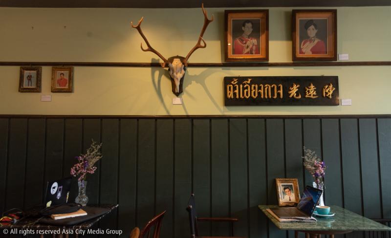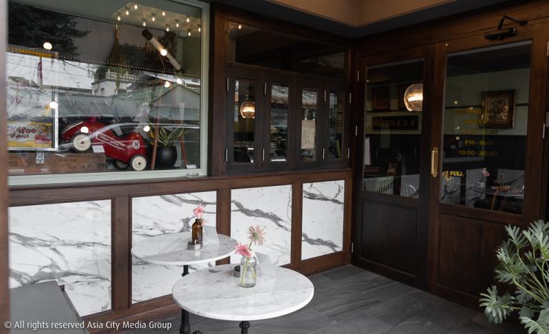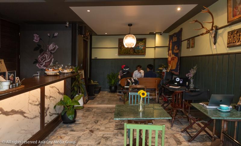 สีหลักของร้านจะเป็นสีเขียวใบแคแซมด้วยสีขาวหินอ่อน ผสมผสานสีน้ำตาลอ่อนเข้มซึ่งได้จากเฟอร์นิเจอร์ไม้เก่าเก็บที่จัดวางเป็นโต๊ะ เก้าอี้ ภายในร้าน ใช่ว่าการรีโนเวตจะแปลงโฉมให้อาคารหลังนี้ถูกเปลี่ยนใหม่หมดซะทีเดียว คาเฟ่นี้ยังคงไว้ซึ่งป้ายชื่อเก่าของร้านชำในสมัย 50 ปีที่แล้ว พื้นหินอ่อนจากร้านเก่าก็ยังได้มาใช้ในคาเฟ่ใหม่แห่งนี้ด้วย ลองก้มลงมองที่พื้นดูสิ