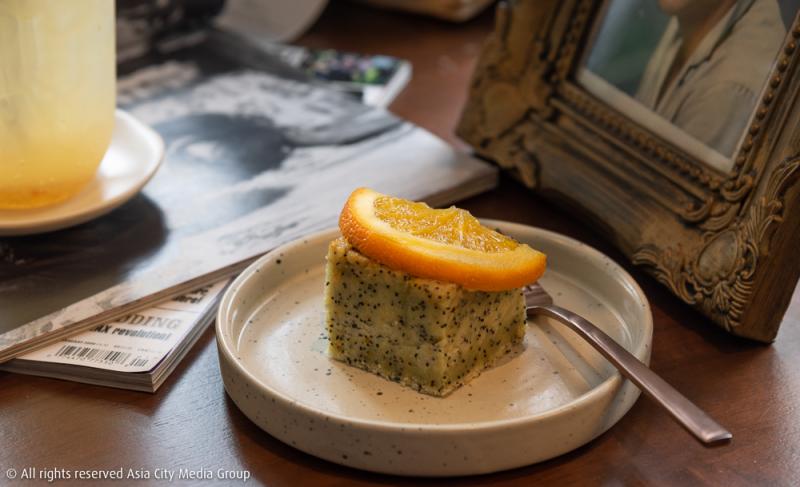คาเฟ่ขนาดน่ารักนี้ให้บริการครบครันทั้งเครื่องดื่ม อาหาร และเบเกอรี เราเริ่มต้นไล่ตั้งแต่เรื่องของเครื่องดื่มกันก่อนเลยดีกว่า ความดีงามโดดเด่นของที่นี่น่าจะเป็นเมนูเครื่องดื่มชนิดเย็นที่ทางร้านสร้างสรรค์ขึ้นมา แก้วแรกที่อยากแนะนำคือ Lemon Orange (90 บาท) น้ำผลไม้ทั้งสองที่มาผสมผสานกันให้ทั้งรสชาติเปรี้ยวสดชื่นหอมหวาน และอยากจะชวนให้ทุกคนคอมโบสั่ง Orange Cake (75 บาท) มาเพิ่มด้วย ขนมเค้กที่มีส่วนผสมของ Poppy Seed กรุบ ๆ สำหรับส้มชิ้นกลมด้านบนสามารถกินได้ทั้งเปลือกเลยนะ สั่งสองเมนูมาคู่กันฟินแน่นอนสำหรับใครที่ชื่นชอบความเป็นผลไม้ตระกูลซีตรัสเช่นนี้