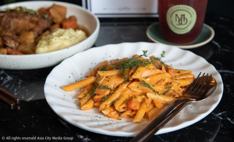 คาเฟแห่งนี้เสิร์ฟความหลากหลายเป็นอาหารโฮมเมดให้เราได้เลือกจิ้มกันไม่ถูก ทางร้านแนะนำจานแรกเป็น Penne Pink Sauce (180 บาท) มีส่วนผสมของเห็ดและแน่นเอียดไปด้วยเนื้อปลาแซลม่อนคลุกเคล้าไปกับซอสรสชาติเปรี้ยวมัน จานนี้อาจจะอิ่มไปเลยครึ่งวัน หากใครกลัวไม่อิ่มแนะนำจานนี้เลย Chicken Stew (180 บาท) สตูว์ไก่ชิ้นโตคู่มันบดไม่อิ่มให้มันรู้กันไป อีกเมนูชวนจุกอย่าง Mojo's Dog (140 บาท) แซนด์วิชชิ้นมหึมาด้านในมีไส้กรอกที่ทางร้านคิดค้นสูตรขึ้นมาเองต้องลองไปกินดูให้ได้นะ เชื่อเหลือเกินว่าน่าจะมีคนชื่นชอบในสิ่งที่ Mojo Old Town ได้นำเสนออยู่ไม่น้อย อย่าลืมไปเยือนกันด้วยนะ