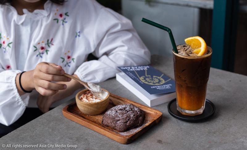 แล้วก็ไม่ใช่แค่หนังสือเท่านั้นที่ทางร้านเลือกสรรค์มาอย่างดี เพราะกาแฟของที่นี่ก็ได้รับการเบลนด์และปรุงมาอย่างใส่ใจ เมนูที่เราขอแนะนำคือ เมนูซิกเนเจอร์ประจำร้าน อาทิ Espresso Nutella (80 บาท) ที่ใช้เมล็ดกาแฟคั่วกลางจากลาว สุมาตรา และไทย ให้รสชาติไปในฟลอรัลหน่อย ๆ ผสมกับความหวานเข้มข้นของช็อคโกแลตนูเทลล่า ไปจนถึงเมนูรีเฟรชชิ่งอย่าง Floral Blossom (60 บาท) โซดาแก้วง่าย ๆ ที่หอมกลิ่นไซรัปดอกไม้ตัดกับความเปรี้ยวของเลมอน