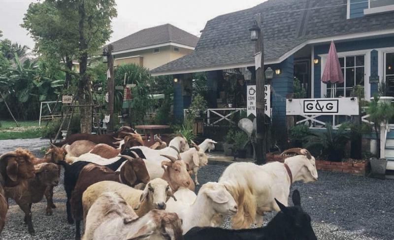 นั่งพักขาและถ่ายรูปภายในร้านเสร็จแล้ว ก็ขอให้เดินออกไปทักทายน้อง ๆ แพะที่ข้างนอกสักหน่อย โดยเราสามารถป้อนผักหญ้าและเข้าถึงเนื้อถึงตัวน้องได้อย่างใกล้ชิดด้วยนะ