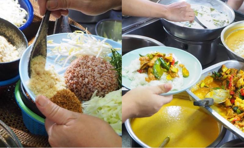 สำหรับร้านเด็ดจัดจ้านของย่านนี้ที่เราอยากแนะนำก็คือ ร้านฉวาง (แม่อวย) ที่เปิดมานานกว่า 30 ปี บอกเลยว่าเข้าไปแล้วอาจต้องตั้งสติสักพัก เพราะมีกับข้าวให้เลือกละลานตาไปหมด แต่เมนูเด็ดที่พลาดไม่ได้และคงไม่มีใครยอมพลาดหากมาร้านฉวางก็คือ คั่วกลิ้งรสจัดจ้านแบบที่คนกินเผ็ดได้ไม่มากอย่างเราแทบต้องกราบว่ายอมแล้วแม่ (อวย) นอกจากนี้ก็ยังมีแกงไตปลาที่ถึงเครื่องถึงรสร้อนแรง กินคู่กับข้าวสวยคือเป็นเลิศ หรือกินกับขนมจีนสักจับสองจับก็เข้าที