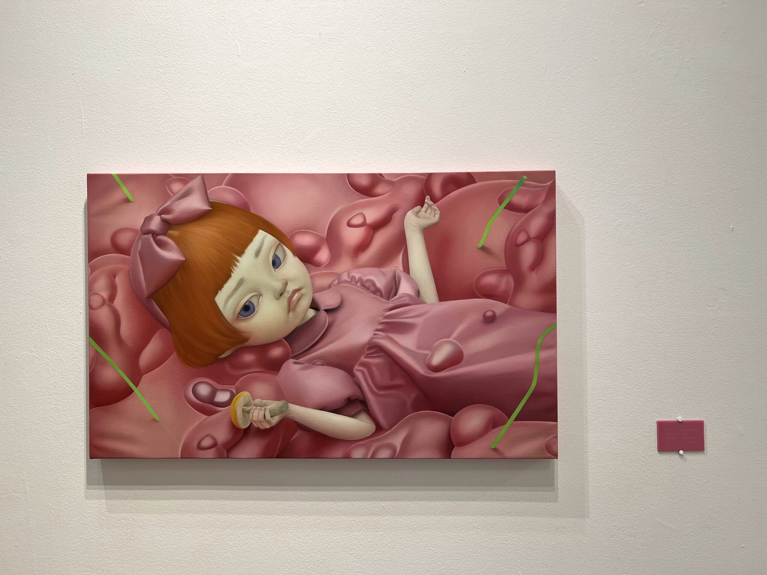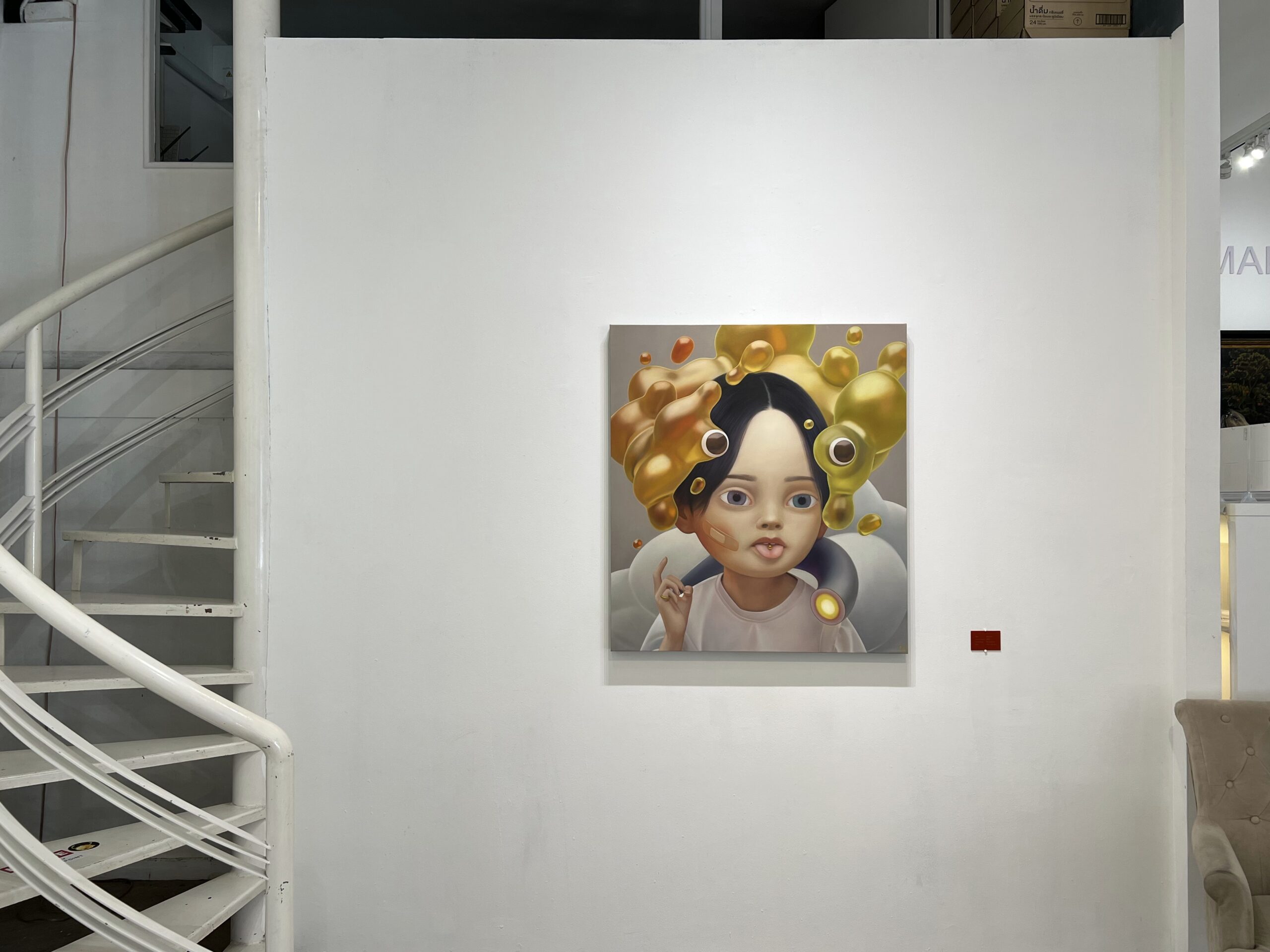 เราไม่ทราบเรื่องราวของศิลปินมาก่อน นอกเหนือไปจากว่าฝีมือของเธอโดดเด่นมาตั้งแต่ยังไม่จบมหาวิทยาลัย ทั้งการลงสี ฝีแปรง รวมถึงมู้ดแอนด์โทนของชิ้นงานแต่ละชิ้น ล้วนแต่สามารถดึงดูดผู้ชมให้จับจ้องได้อย่างไม่วางตา ซึ่งคาแรกเตอร์ที่เป็นศูนย์กลางของทุกอย่างเป็นเด็กหญิงผมแดงวัย 7 ขวบ รูบี้ ที่ศิลปินสร้างขึ้นมาเพื่อเป็นตัวแทนของบางอย่างในอดีต อดีตที่หลอมละลายและหายไปได้เสมอ ไม่ต่างกับสภาพแวดล้อมรอบข้างน้องรูบี้ ที่ดูจะไหลย้อยและพังทลายได้ทุกเมื่อ