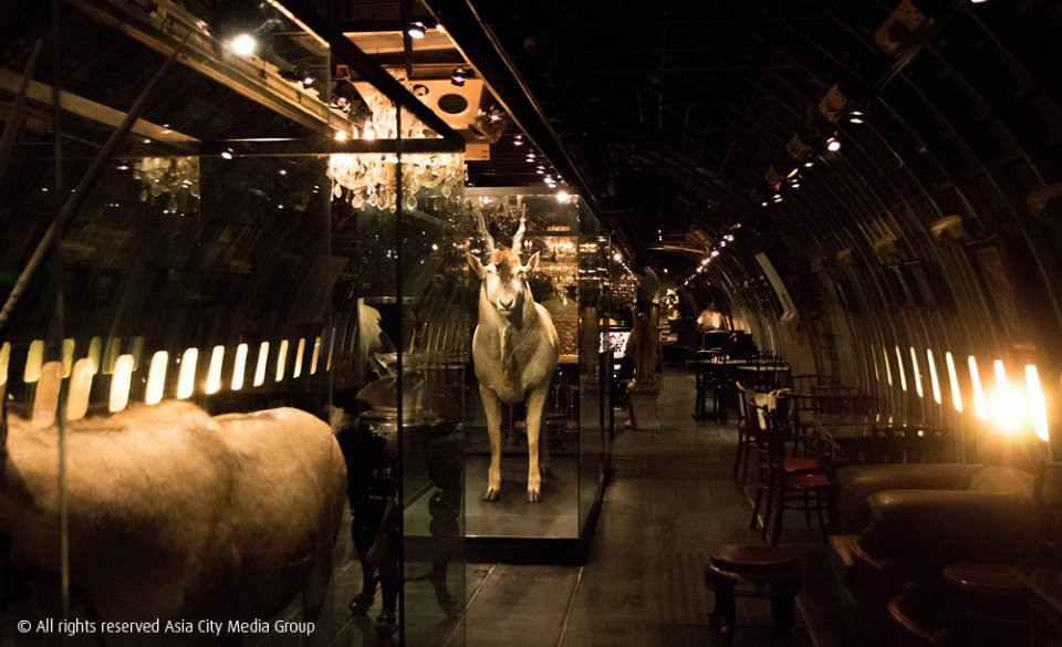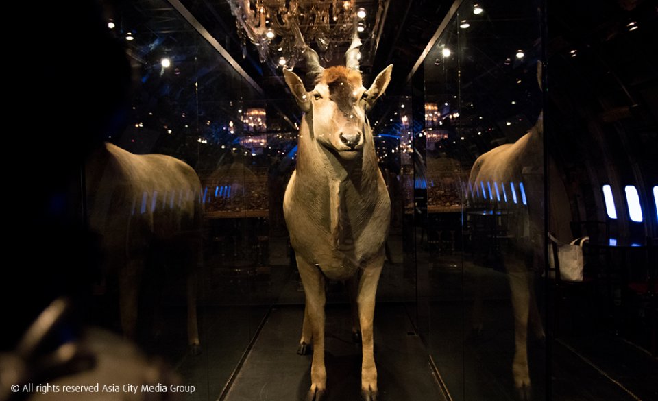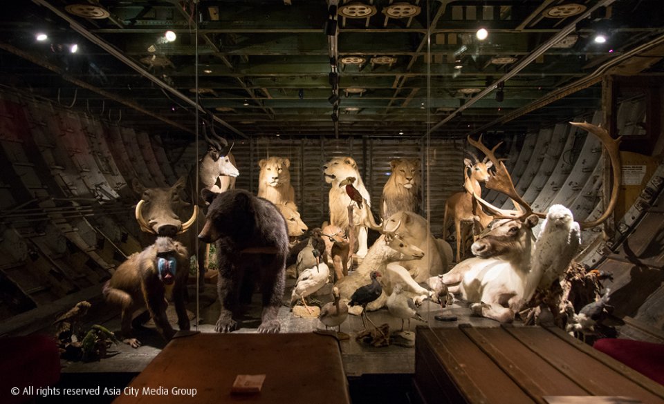ที่ชั้นล่างเป็นส่วนของ Exclusive Lounge ถูกดัดแปลงมาจากห้องเก็บสัมภาระ ซึ่งโซนนี้ก็มีห้องจัดแสดงสัตว์สตาฟขนาดใหญ่ซ่อนอยู่ พร้อมสัตว์นานาชนิดทั้งฝูงสิงโตขาวแอฟริกา หมูป่า กวางป่า ลิงบาบูน และนกหายากจากต่างประเทศอีกหลากหลายสายพันธุ์ เรียกว่าขนมาทั้งป่าเลยทีเดียว