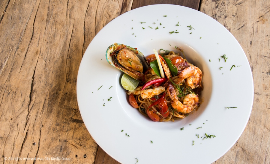 แต่ถ้าชอบอาหารคาวเราแนะนำเมนู Chaophraya (325 บาท) สปาเก็ตตี้ทะเลที่หน้าตาเหมือนคาโบนาร่า แต่จริงๆ แล้วออกรสแซ่บมันๆ ด้วยซอสเจ้าพระยาสูตรพิเศษที่ทางร้านคิดค้นขึ้นมาเอง อย่าลืมสั่งเครื่องดื่มมาดับความเผ็ดกันด้วยล่ะ มีทั้งน้ำปั่นสีสวยอย่าง S.W.A.G (ผลแบล็คเคอร์แรนท์ โยเกิร์ต เลมอน นม ครัมเบิ้ล และชีสเค้ก, 165 บาท) หรือกาแฟก็ได้นะ (เริ่มต้น 70 บาท)