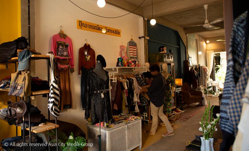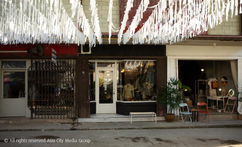 ส่วนโกดังล็อกนี้ก็เป็นอีกหนึ่งอย่างที่เราหลงอยู่ข้างในนานมากทั้ง ๆ ที่ไม่ได้ใหญ่โตอะไรเลย แต่เพราะนี่คือการรวมตัวกันของร้านรวงต่าง ๆ จากคนรุ่นใหม่ของเชียงใหม่ทั้งหมด 10 ร้านด้วยกัน ซึ่งเรามั่นใจมากว่าในเชียงใหม่ยังไม่เคยมีอะไรแบบนี้มาก่อนแน่ ๆ หนึ่งในสิบร้านนี้คือ Stand Behind The Yellow Line ร้านขายของเก่าย้อนยุคแบบที่คุณเอ็กซ์เองคัดแล้วคัดอีก มีทั้งของแต่งบ้าน ของเก่า เสื้อผ้า โปสเตอร์คลาสสิคหายากนั่นเอง โดยคุณเอ็กซ์เองบอกว่าที่จริงแล้วร้าน Stand Behind The Yellow Line ร้านแรกก็อยู่ไม่ไกลจากตรงนี้เท่าไหร่ จะให้เปิดเป็นสาขาที่สองเลยก็ดูไม่น่าจะเวิร์กเพราะทำเลใกล้กันเหลือเกิน จึงถือโอกาสชวนเพื่อน ๆ ในเชียงใหม่ที่มีธุรกิจมาเปิดร้านร่วมกันที่นี่เสียเลย