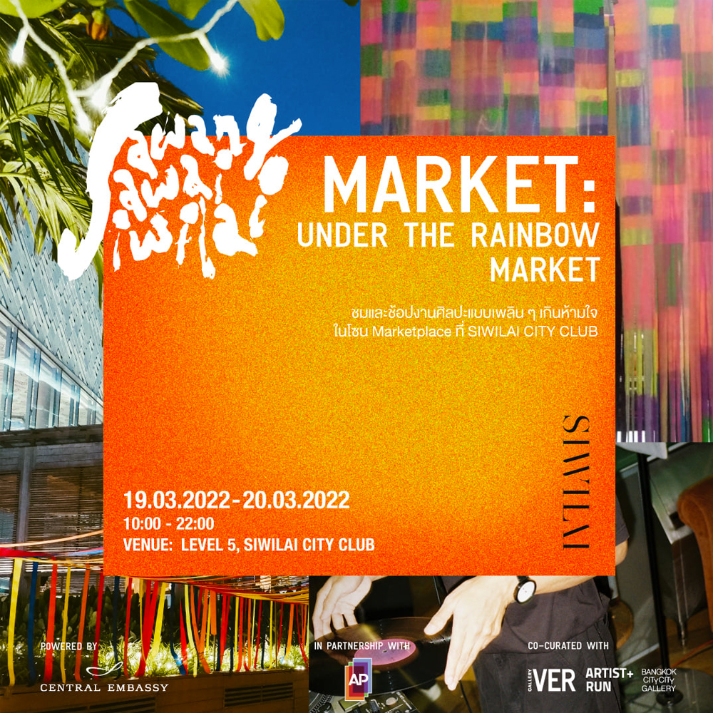 สำหรับสายปาร์ตี้ งานนี้เขาก็ชวนเราไปปลดปล่อยในปาร์ตี้ศิลปะเยียวยาใจ เดินชมงานศิลปะเคล้าเสียงเพลงโดยศิลปิน ทัศนัย เศรษฐเสรี ไปจนถึงการชมงานศิลปะ พร้อมเดินชอปในอาร์ตมาร์เก็ต Under the Rainbow Market ที่จัดเต็มด้วยไอเทมสุดพิเศษที่มีเฉพาะในงานนี้ ซึ่งได้รับแรงบันดาลใจจากบรรยากาศแห่งสายรุ้งในผลงานศิลปะชิ้นยักษ์ SIAM Rainbow Republic (2020) ของ มิตร ใจอินทร์ ศิลปินร่วมสมัยไทยที่ดังไกลในระดับโลก ฯลฯ