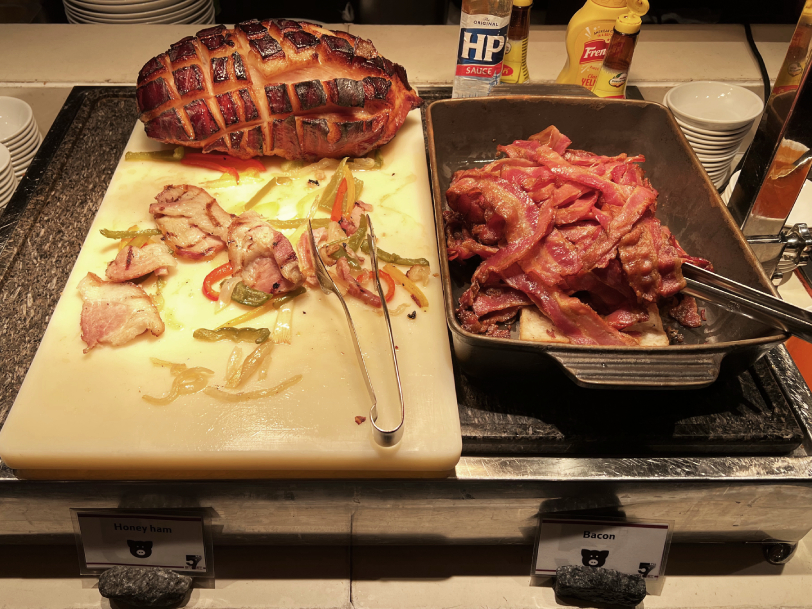 รูมเซอร์วิสที่นี่มีบริการ 24 ชั่วโมง แต่บางเมนูมีจำกัดเวลาขาย แนะนำให้สแกนดูตอนเข้าพักเลย จะได้แพลนได้ว่าอยากลองเมนูไหน อยากสั่งอะไรบ้าง จะได้จัดสรรเวลาถูก แต่ถ้าไม่เน้นรูมเซอร์วิส ก็รอลองลิ้มรสอาหารเช้าหลายสเตชันที่เขาจัดไว้ให้ในช่วงเช้าก็ได้ ส่วนตัวเราค่อนข้างประทับใจปริมาณของอาหารที่เตรียมไว้ โดยเฉพาะอย่างยิ่งที่ช่วงเวลา Post-COVID แบบนี้ หลายแห่งเลือกจะลดทอนชอยส์อาหารบุฟเฟต์ลง แต่ที่นี่มาครบมาเต็มแล้วจ้า ซุ้มเบคอนคือจุใจมาก ๆ รัก!
