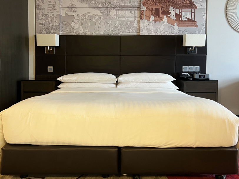 อาจจะเป็นเพราะความอยากรู้อยากลองส่วนตัว บวกกับความสะดวกเฉพาะหน้า ที่ทำให้เราเลือกจองห้องพักแบบ High Floor ของโรงแรม Bangkok Marriott Hotel Sukhumvit ไปแบบไม่คิดหน้าคิดหลัง เพราะรู้ว่าหลังจากร่วมอิเวนต์เครื่องดื่มที่รูฟท็อปบรรยากาศดีของเขาอย่าง Octave Rooftop Lounge & Bar แล้ว เราคงไม่อยากเดินทางกลับบ้านให้วุ่นวายแน่ ๆ