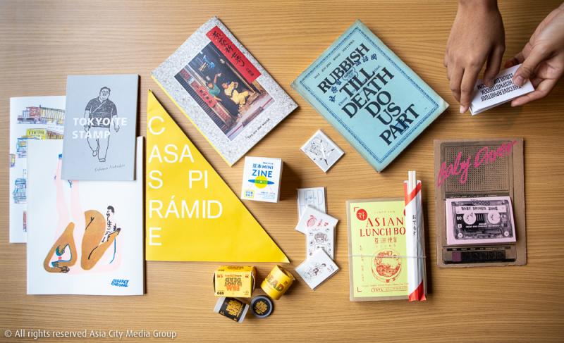 โดยเล่มน่าหยิบใน Zine Library ก็จะมีตั้งแต่ Tea are the World รวมชุดภาพการชงชาชักที่เต็มไปด้วยท่าทางสุดฮา, Violet Diary รวมภาพ Portrait ของนางแบบญี่ปุ่นที่ตัวเล่มถูกตัดเป็น 6 มุม, Baby Driver Zine ซีนที่ได้แรงบันดาลใจมาจากภาพยนตร์สายซิ่ง Baby Driver, Casa Pyramid รวมภาพบ้านพักอาศัยที่อยู่ในเล่มทรงสามเหลี่ยม, Asian Lunch Box เล่มนี้มาในทรงคล้ายกล่องอาหารเบนโตะพร้อมตะเกียบ, Film is not Dead ซีนที่ม้วนอยู่ในกลักฟิล์มจนเห็นครั้งแรกอาจจะคิดว่าเป็นฟิล์มจริง ๆ และอีกมากมายที่นำเสนอเนื้อหาในรูปแบบสุดน่ารัก