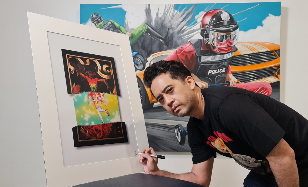 ขณะที่ ปาล์ม อินสติงค์ หรือ ปรียวิศว์ นิลจุลกะ ก็ส่งผลงานเลนติกูลาร์พรินติง และอะคริลิกดิจิทัลเพนติงแบบสื่อผสมไปร่วม ภายใต้ธีม Memento Moe ที่ได้แรงบันดาลใจมาจากคำว่า Memento Mori ซึ่งเป็นมรณานุสติของฝั่งตะวันตก และคำว่า 'โมเอะ' ที่หมายถึงความน่ารักแบบอนิเมะญี่ปุ่น ซึ่งทั้งหมดก็คือการผสมภาพวาดเกี่ยวกับความตายของตะวันตกเข้ากับภาพวาดการ์ตูนญี่ปุ่นคิวต์ ๆ นั่นแหละ