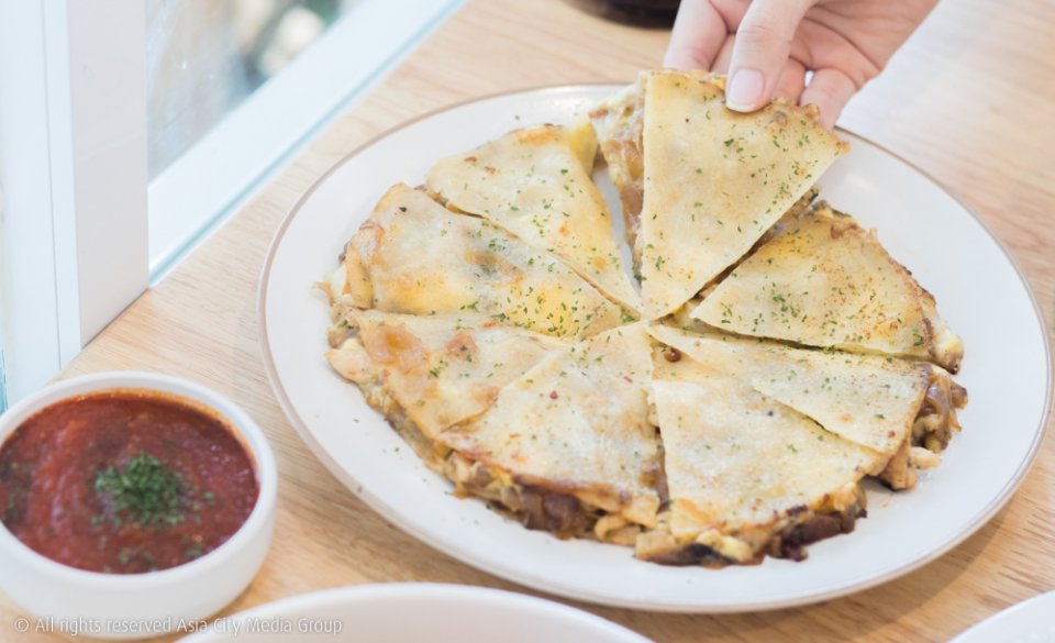 เมนูใหม่ล่าสุดของร้านกับ เคสดีญ่าไก่ (185 บาท) พิซซ่าเม็กซิกันสไตล์เสิร์ฟพร้อมกับดิปมะเขือเทศเข้มข้น มีความฟิวชั่นเบา ๆ แต่รสชาติไม่เบาเลย