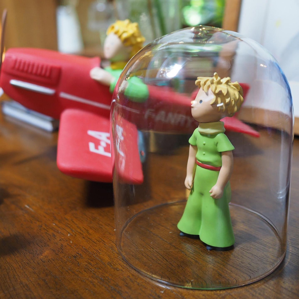 บรรดาไอเทมต่าง ๆ ที่นำมาจัดแสดงที่นี่ล้วนเป็นของสะสมของ คุณอรุณี ชูบุญราษฎร์ อดีตกองบรรณาธิการนิตยสารพลอยแกมเพชรที่อยู่กับนิตยสารมานานเกือบ 30 ปี และทำหน้าที่พาผู้อ่านไปท่องเที่ยวในที่ต่าง ๆ ผ่านตัวหนังสือ ซึ่งคุณอรุณีก็เป็นแฟนตัวยงของวรรณกรรมเจ้าชายน้อย และในงานนี้ก็ได้นำของสะสมชิ้นเล็กชิ้นน้อย ที่รวมถึงหนังสือเจ้าชายน้อยทั้ง 25 ภาษา และภาพพิมพ์จากฝรั่งเศสซึ่งเป็นภาพวาดดั้งเดิมโดย อองตวน เดอ แซง-เตกซูเปรี ผู้ให้กำเนิดเจ้าชายน้อยนั่นเอง