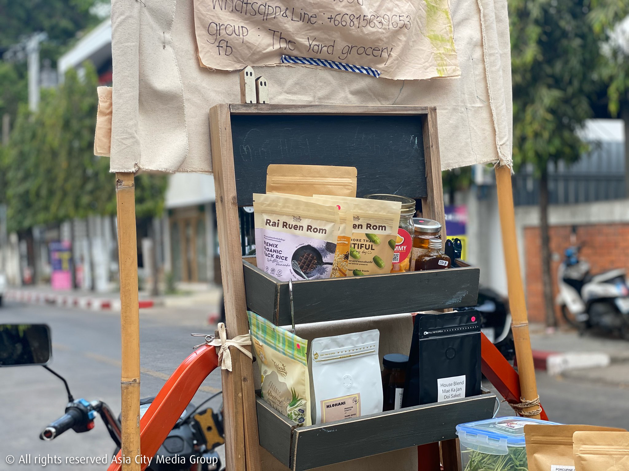 'หลังจากนั้นเราก็เริ่มชวน ๆ ร้านเพื่อนบ้านในย่านนี้ให้เอาของมาฝากเราขาย ตอนนี้บนรถ The Yard Grocery เลยมีแทบทุกอย่างให้เลือกซื้อเหมือนเป็นร้านชำเคลื่อนที่เลย'