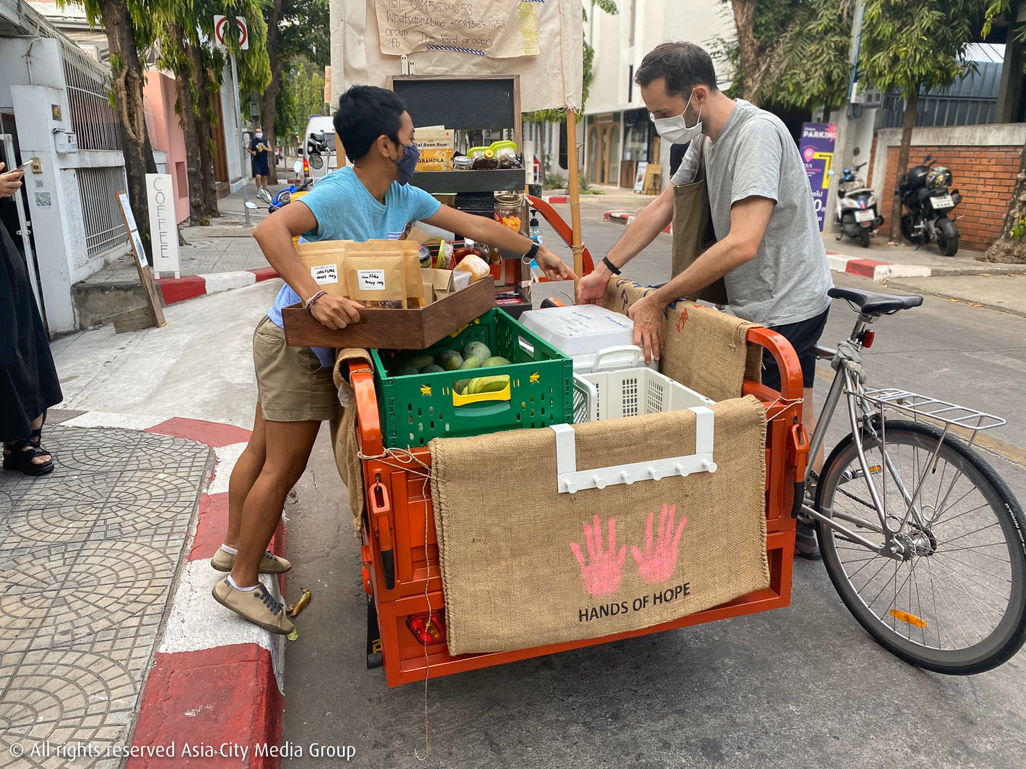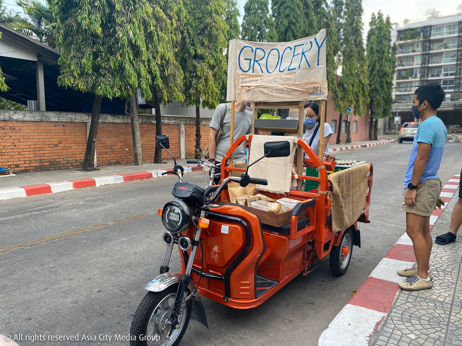 'ไอเดียจริง ๆ เริ่มมาจากเรามีเพื่อนเป็นชาวสวน เกษตรกร จากทางฝั่งเชียงใหม่ เชียงราย สุพรรณบุรี แล้วก็บุรีรัมย์ ตอนนี้เขามีปัญหาผักผลไม้ล้นสต็อก เพราะร้านอาหารกับโรงแรมที่เคยรับไปใช้ เขาหยุดสั่งในช่วงโควิด เราเลยขนใส่รถเร่ขายกันดื้อ ๆ แบบนี้เลย' พี่ส้มใหญ่เล่าถึงความเป็นมาในการออกสตาร์ตรถครั้งแรกเมื่อวันที่ 1 เม.ย.