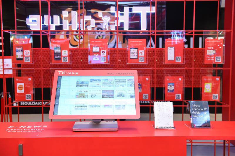 ทาง TK Alive ขอเรียกพื้นที่สีแดงเล็ก ๆ ตรงนี้ว่าเป็น Co-Learning Space ที่ตั้งอยู่ภายใต้แนวคิด Read Everywhere อยู่ที่ไหนก็อ่านได้หมด ทำให้ที่นี่ไม่ใช่จะยกหนังสือที่ยังไม่ได้รับความเสียหายจากเหตุการณ์ไฟไหม้ และเหล่าหนังสือที่สมาชิกนำมาคืนหลังจากเหตุการณ์นั้น นำมารวมกันอีกครั้งเพื่อให้ได้มีหนังสือเล่มอ่านแบบ Offline เท่านั้น แต่สื่อความรู้แบบ Online ก็มีให้บริการเช่นกัน ซึ่งแม้ว่า TK park จะต้องปิดซ่อมแซมเป็นเวลานาน แต่เพราะคิดว่าการเรียนรู้ต้องไม่หยุดนิ่ง และต้องการเดินหน้าการส่งเสริมการอ่านต่อไปได้ พื้นที่อย่าง TK Alive จึงเปิดตัวขึ้นมา