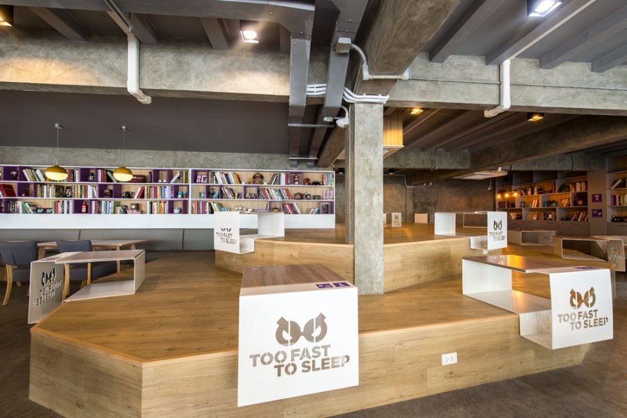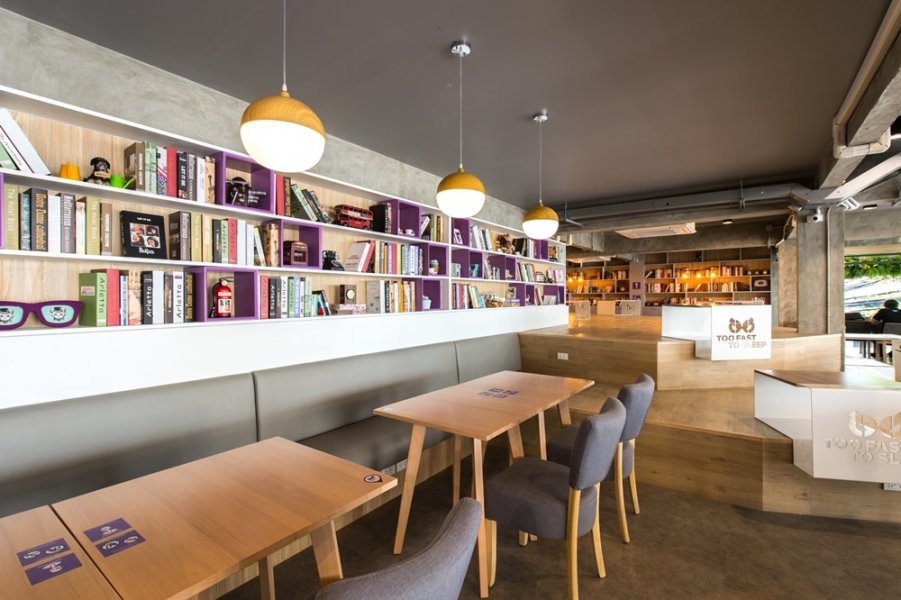 ถือว่าเป็นหนึ่งในสถานที่พบปะและอ่านหนังสือยอดฮิตเลยทีเดียวสำหรับคาเฟ่เปิดตลอด 24 ชั่วโมงอย่าง Too Fast Too Sleep ที่ MRT สามย่าน โดยหลังจากที่เปิดทำการเมื่อ 5 ปีที่แล้ว ก็เป็นคาเฟที่หัวบันไดไม่เคยแห้ง เพราะมีคนเดินทางเข้ามาใช้บริการตลอดทั้งวันทั้งคืน ยิ่งช่วงใกล้สอบนี่แทบจะหาที่นั่งไม่ได้ด้วยซ้ำ