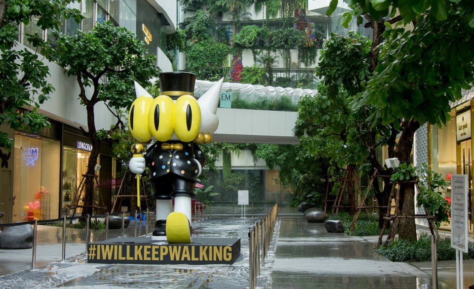 มันมาจาก #IWILLKEEPWALKING เป็นคอนเซ็ปต์ที่ผมคิดว่าท้าทายดี ผมเลยเริ่มต้นที่ตัวเอง หันมามองตัวเอง ว่าในฐานะที่ผมก็เป็นคนที่ชอบงานศิลปะคนหนึ่ง เลยคิดไอเดียออกมาว่าการที่เราตั้งใจจะเริ่มทำอะไรสักอย่าง มันต้องเริ่มทำจากตัวเองก่อน อะไรที่เราทำแล้วออกมาดี อะไรที่เราถนัด เราถ่ายทอดออกมาในทางที่ดีให้คนอื่นได้เห็น ผมเลยเริ่มลงมือทำตัวรูปปั้นแล้วตั้งชื่อว่า THE WALKING 3BALLS ขึ้นมา ในท่ากำลังก้าวเดินไปข้างหน้า เพื่อเป็นการบอกว่า เราจะไม่หยุดอยู่กับที่ การก้าวเดินมันทำให้เกิดการเปลี่ยนแปลง เพื่อเป็นแรงบันดาลใจให้กับทุกคนที่กล้าจะเปลี่ยนแปลง กล้าที่จะก้าวออกมาทำในสิ่งที่ตัวเองถนัดและมีความเชื่อที่จะลงมือทำครับ
