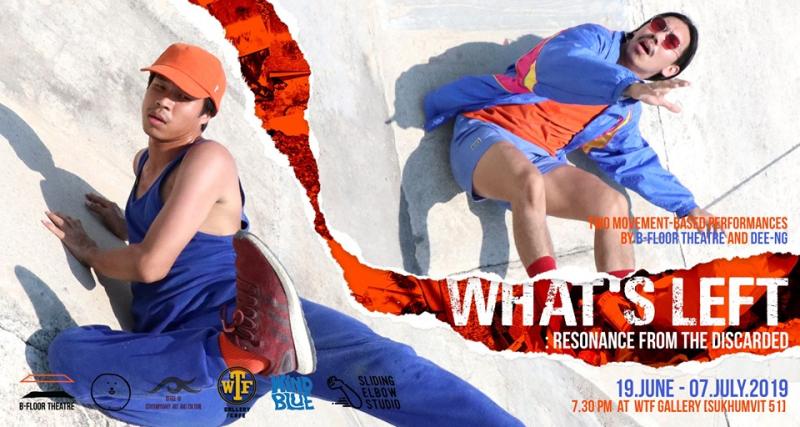 กลุ่ม B-Floor เป็นกลุ่มนักแสดงละครเวทีที่สะท้อนประเด็นต่าง ๆ ในสังคมซึ่งมีผลงานมาแล้วมากมาย และวันนี้สายอาร์ตกับชาวรักษ์โลกก็พลาดไม่ได้เด็ดขาด! เพราะเรามีการแสดงดี ๆ ของกลุ่ม B-floor กลุ่มศิลปินเลือดใหม่ มาแนะนำให้ทุกคนได้ตื่นตาตื่นใจกันด้วยล่ะ กับ What’s left : Resonance from the discarded แรงสะท้อนจากสิ่งที่ถูกทิ้ง ของคุณกวิน - กวิน พิชิตกุลณ และ คุณตามใจ - สุรัตน์ แก้วสีคร้าม ใน 2 การแสดงเดี่ยว ที่นำ 2 เศษซาก มาสร้างเป็นการแสดงเพื่อสะท้อนสังคม