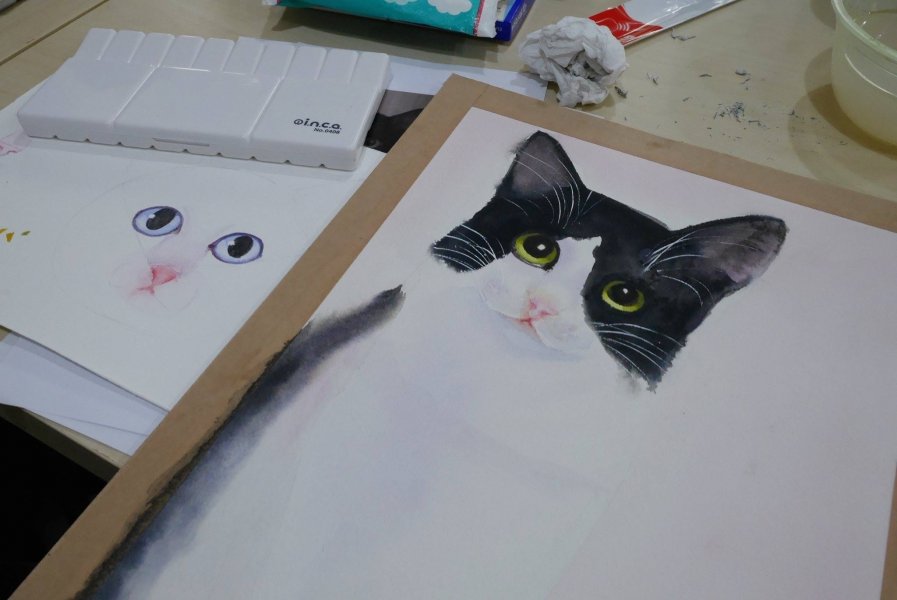เวิร์คช็อปเอาใจทาสแมวอย่างเรา กับคอร์สสั้นๆ แบบวันเดียวจบที่ Meraki Studio ครั้งนี้พิเศษมากๆ เพราะมีอาจารย์ปุ๊ก-ชัชวาลย์ รักษา ศิลปินผู้เชี่ยวชาญการวาดภาพสัตว์โดยเฉพาะหมาและแมว มาสอนวาดรูปน้องแมวขนฟูๆ ในสไตล์สีน้ำ ใครชอบวาดรูปสีน้ำแล้วก็ชอบแมวด้วยน่าจะถูกใจ