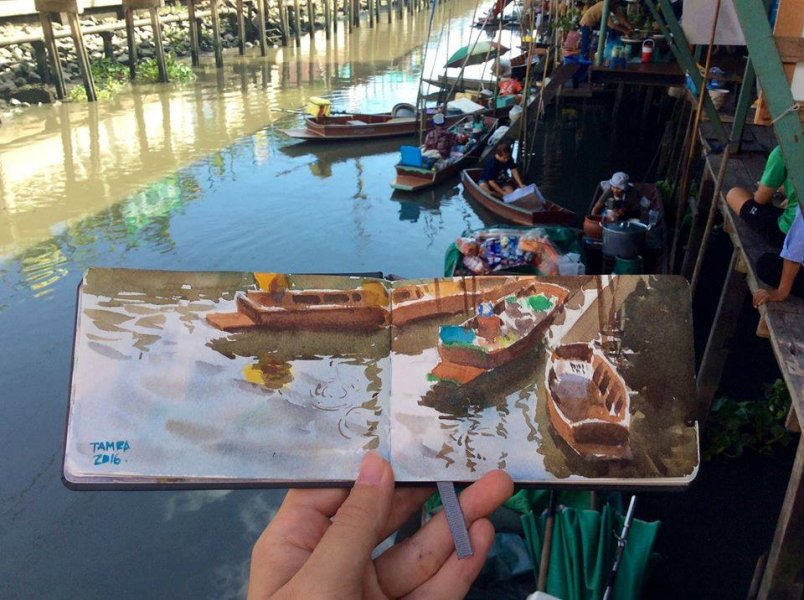 แต่ถ้าสนใจการวาดรูปทิวทัศน์มากกว่า ครูโต๊ะก็เปิดคลาส “Scenic Watercolour Painting: Floating Market” ซึ่งเป็นการสอนวาดรูปแม่น้ำลำคลองด้วยสีน้ำ เน้นเทคนิดการระบายแสงและเงาสะท้อน สามารถเช็กตารางเวิร์กช็อปอื่นๆ ประจำเดือนก.ย. ที่ Meraki ได้ที่ www.fb.com/MerakiStudioArtofLife เลย