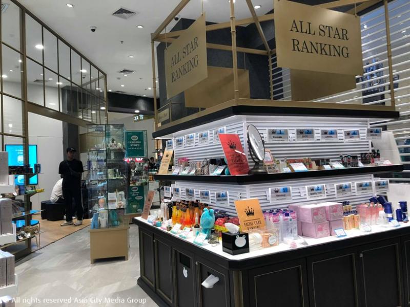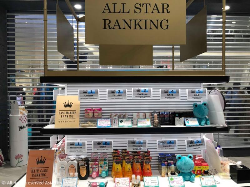 เราชอบที่ชั้นวางของหลัก ๆ ด้านในร้าน จะถูกจัดตาม Ranking ในหมวดหมู่ต่าง ๆ อาทิเช่น Base Make Up Ranking, Hair Care Ranking รวมไปถึง Facial Care Ranking ก็มีเหมือนกันนะ ซึ่งใน Ranking แต่ละตัวจะจัดอันดับความนิยมของผู้ใช้ที่ทางเว็บ @cosme ได้รวบรวมเป็นสถิติแล้ววิเคราะห์ข้อมูลมาให้เราเรียบร้อยแล้ว แต่ละ Ranking จะมีแบรนด์ดัง ๆ ในหมวดหมู่นั้น ๆ ต่างกันออกไป อาทิ แบรนด์ Pony Effect ที่โด่งดังในเรื่องคุชชั่นและรองพื้น หรือ Moist Diane ที่มาเป็นอันดับหนึ่งในการจัดอันดับแชมพูเพื่อผมแห้งเสียโดยเฉพาะเป็นต้น