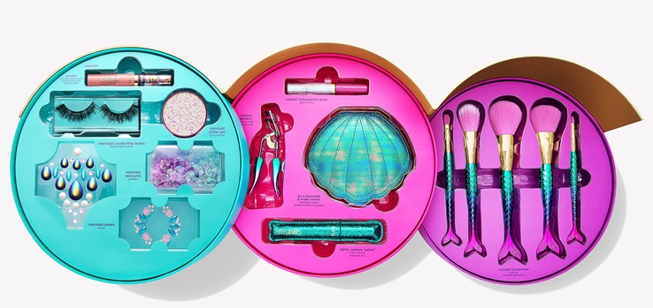 มีทั้งชุดแปรง Minutes To Mermaid พาเลตต์อายแชโดว์ Be A Mermaid & Make Wave ที่ดัดขนตาพร้อมมาสคาร่า ลิปจิ้มจุ่มเนื้อแมตต์รุ่นลิมิเต็ด ลิปกลอส Tarteist™ Holographic Lip Paint เจลกลิตเตอร์ รวมไปถึงสรรพสิ่งของตกแต่งเพิ่มความวิ้งวับต่าง ๆ อย่างพวกเลื่อมพลาสติก ขนตาปลอม และผงกากเพชรอานุภาพระดับ 8 ริกเตอร์