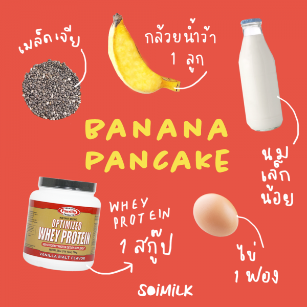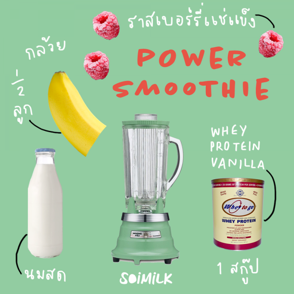 - เวย์โปรตีน 1 สกู๊ป (หรือใช้ข้าวโอ๊ต 3 ช้อนโต๊ะ)