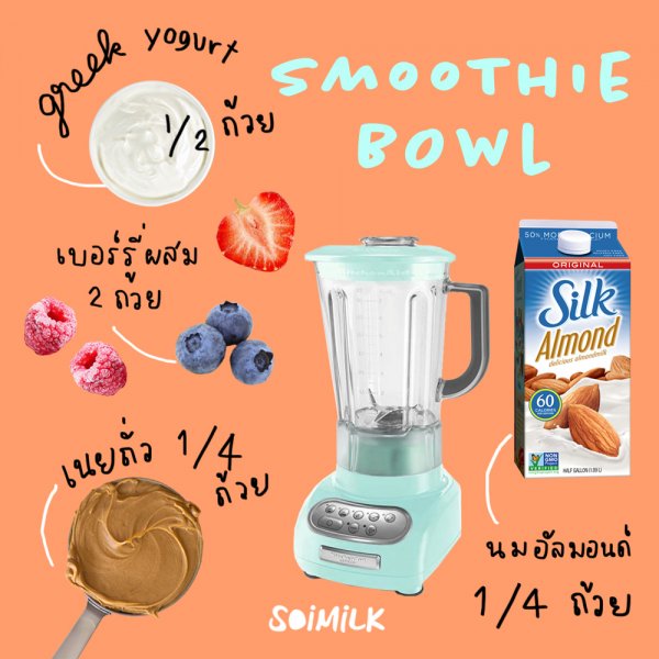 แน่นอนว่าเมนูฮอตฮิตเพื่อสุขภาพที่กำลังอินเทรนด์สุดๆ ตอนนี้ต้องยกให้สมูทตี้โบลว์ ซึ่งวิธีทำไม่ได้ยากอย่างที่คิดเลยนะ แค่นำส่วนผสมต่อไปนี้ไปปั่นจนเนื้อนวลเข้ากันดี แล้วนำผลไม้สดมาเรียง ก็ถือว่าเป็นอันเสร็จเรียบร้อย!