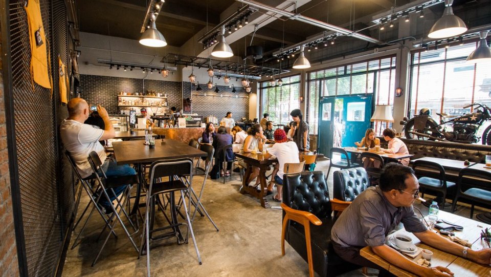 ภายในร้านนั้นให้ความรู้สึกลุยๆ กับกำแพงอิฐและโซฟาเบาะหนัง เราแนะนำให้ลองเมนู BBQ Rib (380 บาท) ซี่โครงหมูอบซอสบาร์บีคิวเนื้อนุ่มชุ่มซอส และบราวนี่ยอดนิยมของทางร้าน ฮอตจนบางทีต้องโทรมาจองกันเลยทีเดียว ถึงแม้ว่าจะเพิ่งเปิดไม่นานแต่ก็มีลูกค้าแวะเวียนมาเยี่ยมตลอดทั้งวัน เพราะบรรยากาศที่นี่ก็ชิลมาก เหมาะฟังเพลงปั่นงานได้สบายๆ ช่วงเช้า-บ่ายเพราะจะเป็นเวลาที่ดีที่สุด เพราะร้านจะยังไม่พลุกพล่านจนเกินไป