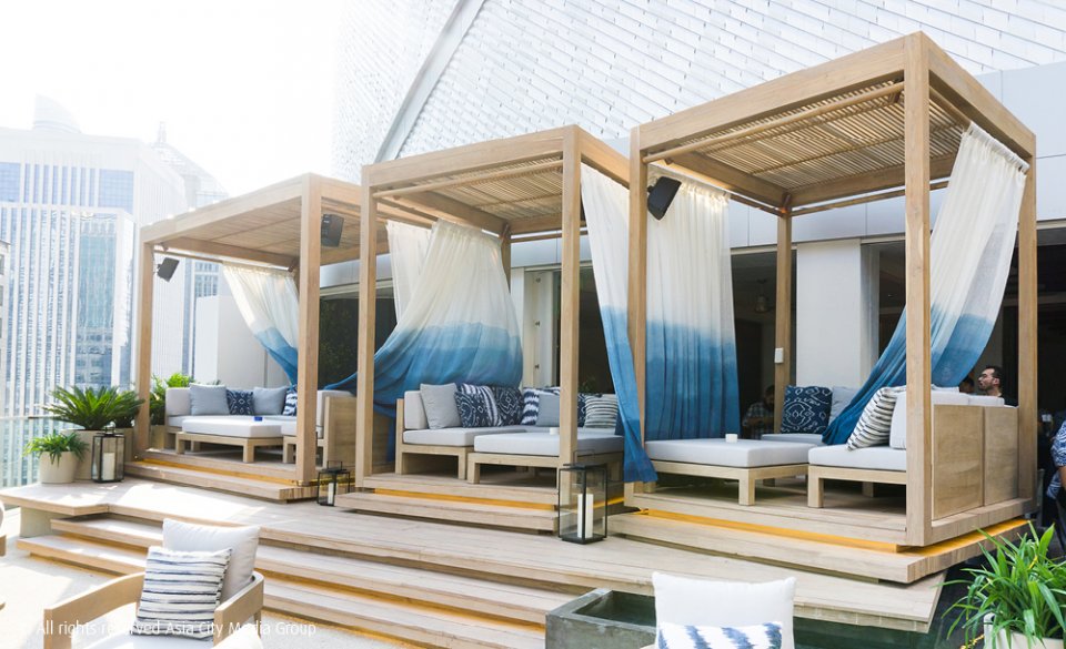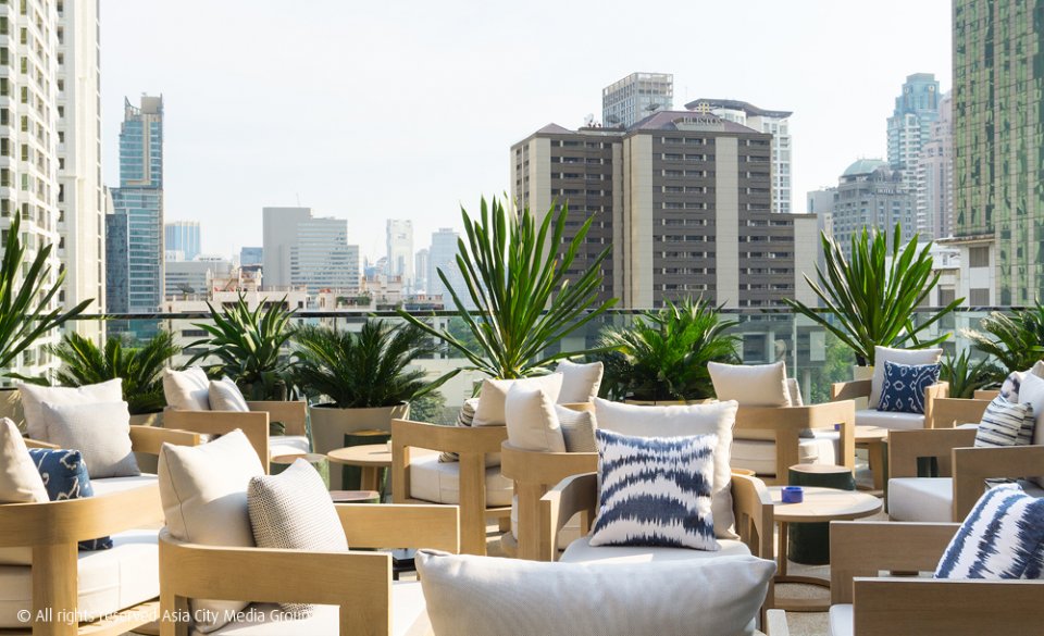 ที่เราปลื้มที่สุดเห็นจะเป็นโซน Terrace ด้านนอกบริเวณระเบียงขนาดใหญ่ที่เราสามารถมองเห็นวิวเส้นสุขุมวิทได้แบบ 180 องศา มีโต๊ะเก้าอี้ให้นั่งรับลมกันชิลๆ บวกกับศาลาโซฟาให้นอนเอนกายอีก 5 หลัง แถมดีไซน์ที่เลือกคุมโทนคู่สีคราม-ขาวยังทำให้เราแอบลืมความวุ่นวายในเมืองใหญ่ไปชั่วขณะ ถ้ามีสระว่ายน้ำอีกนิดก็คือรีสอร์ทริมทะเลดีๆ นี่เอง