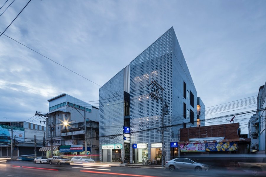 อีกหนึ่งสถาปัตยกรรมที่เข้าชิงในสาขาเดียวกันมีความน่าสนใจตรงที่ไม่ได้อยู่ในกรุงเทพฯ แต่อยู่ในจ.สุราษฎร์ธานี ซึ่งได้รับการออกแบบให้เข้ากับความต้องการของทั้งเจ้าของตึกสองพี่น้องที่เป็นทั้งเภสัชกร และสัตวแพทย์ จึงออกมาเป็นอาคารที่เป็นทุกอย่างตั้งแต่ที่ตั้งคลินิก ไปจนถึงร้านขายของสัตว์เลี้ยง โฮสเทล คาเฟ และห้องประชุมให้เช่า โดยแบ่งตึกออกเป็น 2 ส่วน คือส่วนหน้าและส่วนหลังโดยพื้นที่ตรงกลางทำเป็นสวนให้ลูกค้ามานั่งผ่อนคลายได้