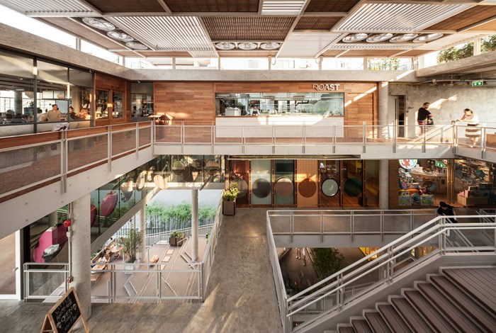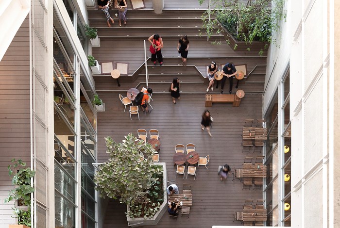 โดยเฉพาะโซน The Ground ที่เต็มไปด้วยร้านอาหาร ต้นไม้ และร้านขายของคีออสเล็กๆ ไปจนถึงที่นั่งไล่ระดับที่อยู่ภายใต้ร่มของชั้น 3 และชั้น 4 ที่ทำหน้าที่กันแดดกันฝนให้นั่งกันได้ทั้งวัน ด้านหน้าสวยเด่นด้วยตะแกรงเหล็กบางๆ ที่ทำหน้าที่คล้ายม่านที่กลมกลืนไปกับสถาปัตยกรรมปูนเปลือยของที่นี่ ทำให้คว้าทั้งรางวัลชนะเลิศจากทั้งกรรมการและ Popular Vote
