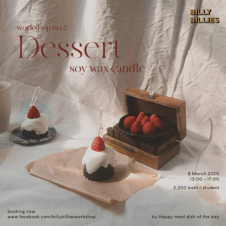 เวิร์กชอปเทียนหอมแห่งความคิวต์จากไขถั่วเหลืองที่รอบนี้มาในธีม 'ขนมหวาน' (Desserts) ซึ่งทางสตูดิโอเวิร์กชอปจัดขึ้นร่วมกับ happy meal dish of the day อาร์ตติสต์สายแบ๊วที่ขยันหาดีไซน์น่ารัก ๆ มาล่อตาล่อใจคนรักงานคราฟต์อย่างเราซะเหลือเกิน