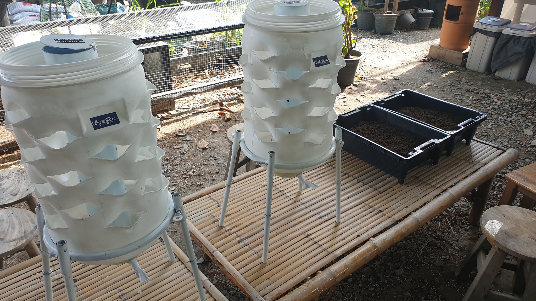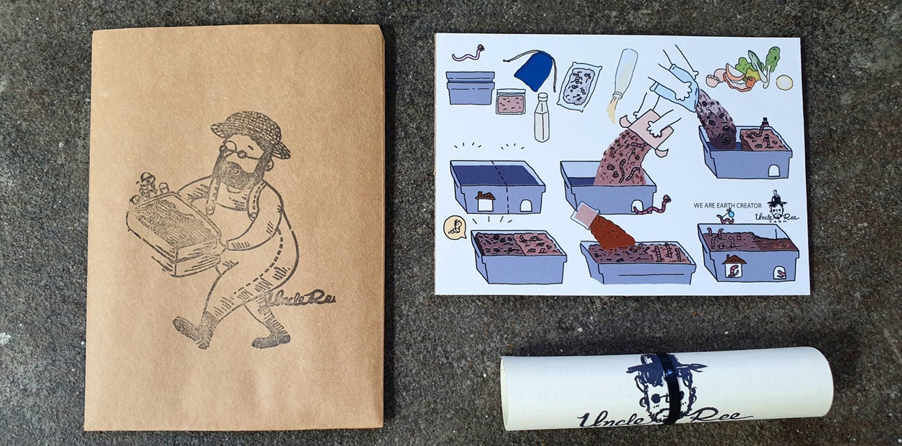 นอกจากได้ไส้เดือนตั้งต้นมาถึง 600 ตัวแล้ว บ็อกซ์เซตนี้ยังแถมเมล็ดพันธุ์ Non GMOs สวนครัวไทย ได้แก่ กะเพรา โหระพา ผักชี ผักชีลาว และพริกบ้าน ที่ได้มาจากศูนย์เรียนรู้เศรษฐกิจพอเพียง ๙ ดี เอาไว้ปลูกกันเล่น ๆ ใน Wormcone คอนโดสำหรับไส้เดือนขนาดยักษ์ รูปทรงเสมือนคีย์โฮลการ์เด้นขนาดย่อม ๆ ที่ Uncleree Farm ได้ส่งเสริมถังปลูกผลงานจาก อบต.เหล่าโพนค้อ จ.สกลนคร มาจัดเซตให้พร้อมใช้งาน โดยประกอบด้วยชุดดินผสมพิเศษ 12 กิโลกรัม, เบดดิ้งชุดอาหารขุนให้ไส้เดือนของเราตัวใหญ่วันใหญ่คืน, เชื้อจุลินทรีย์สำหรับการเริ่มต้นเลี้ยง และคู่มือการใช้งานแสนคิวต์